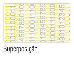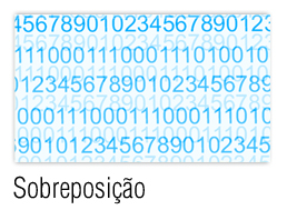 Micro números em sobreposição – impressão de dois elementos, um sobre o outro, com matizes de diferentes cores.